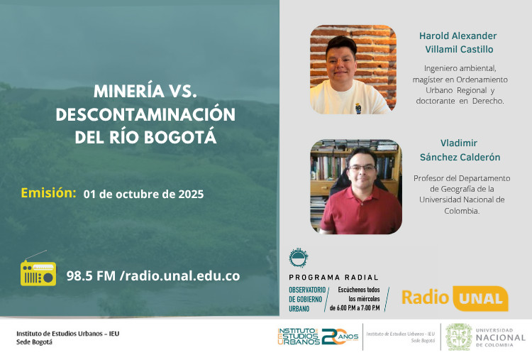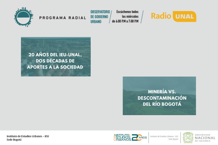 En los dos episodios más recientes del Observatorio de Gobierno Urbano se abordaron los temas: 20 años del IEU-UNAL, dos décadas de aportes a la sociedad y Minería vs. descontaminación del río Bogotá.