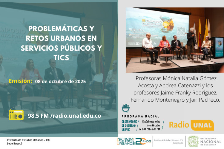Los días 16 y 17 septiembre, con motivo de los 20 años del IEU-UNAL, la Maestría en Gobierno Urbano y la Especialización en Mercados y Políticas de Suelo del Instituto de Estudios Urbanos, en alianza con la Escuela Superior de Administración Pública -ESAP- y el apoyo de la Cámara de Comercio de Bogotá, realizaron el Concluyó con éxito el III Simposio Internacional “Gobierno Urbano: debates entre lo urbano y lo metropolitano”.