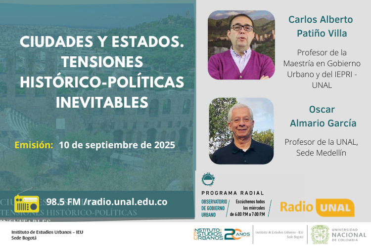 El Instituto de Estudios Urbanos de la UNAL presentó el libro Ciudades y Estados. Tensiones histórico-políticas inevitables. Hablamos con su autor el profesor de la Maestría en Gobierno Urbano, Carlos Alberto Patiño, docente titular del IEPRI-UNAL y con Óscar Almario García, profesor de la UNAL, sede Medellín.
